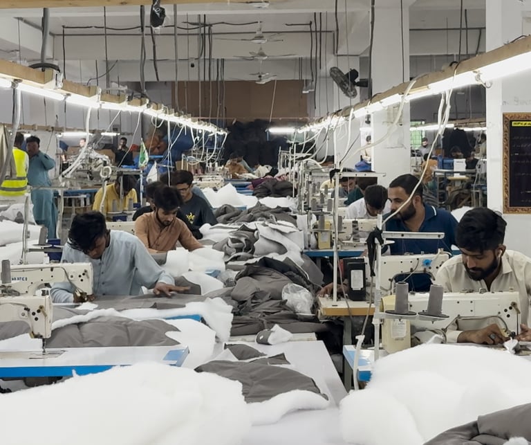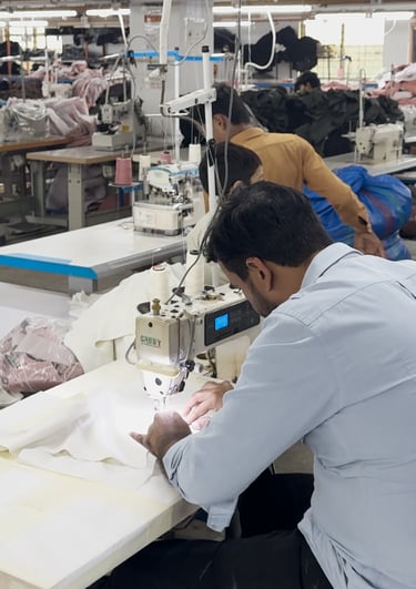 Our manufacturing unit in Lahore, Pakistan is equipped with modern machinery, a skilled workforce, and an experienced management team all working together to ensure every garment meets the highest standards of quality, comfort, and consistency.